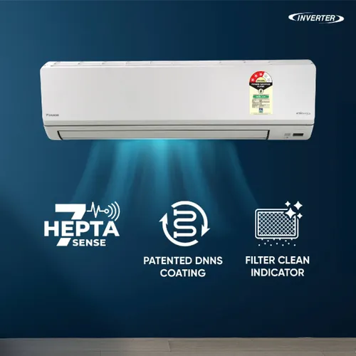 Experience heavy-duty cooling performance with the Daikin 2.6 Ton 3 Star Inverter Split AC, designed for very large rooms (220+ sq. ft.).