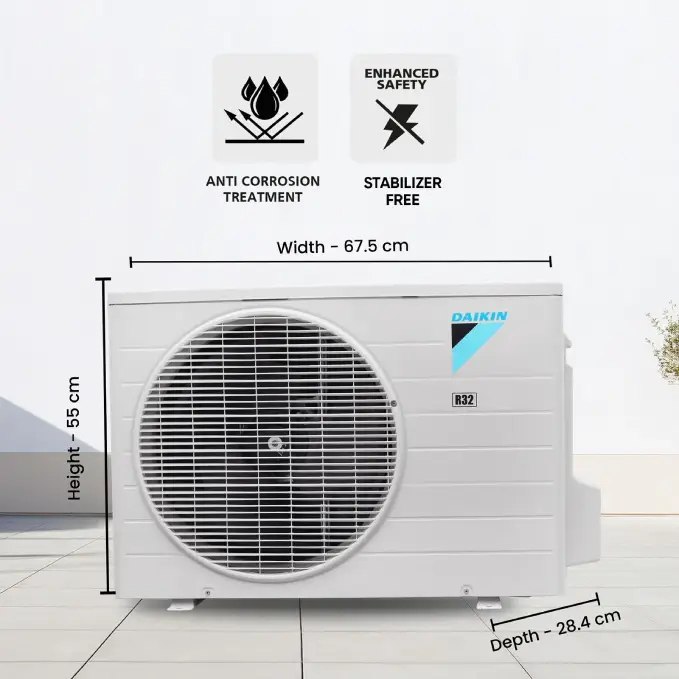 The Daikin FTQ28XV16WBA 0.8 Ton Split AC is designed for compact spaces where efficient cooling is essential. Its rotary compressor ensures stable performance while maintaining low maintenance.