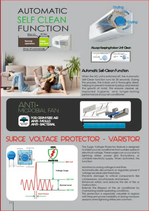 With Jet Air Flow technology and a heavy-duty rotary compressor, it ensures fast and uniform cooling across large rooms.