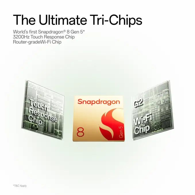 The Tri-Chip Performance Architecture — featuring the OP Gaming Core, dedicated G2 Wi-Fi chip, and high-speed touch-response chip — ensures ultra-low latency, reduced lag, and competitive-grade responsiveness.