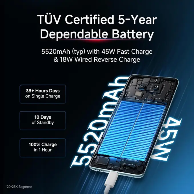 | Batteries | 5520 mAh battery with 45W Turbo Charging |