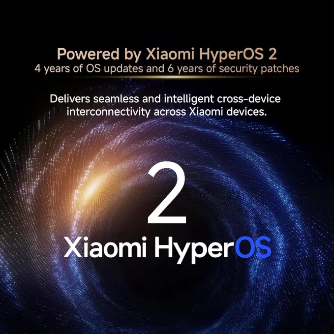 The smartphone runs on Android 15 with Xiaomi HyperOS, providing a smooth, secure, and future-ready user experience.