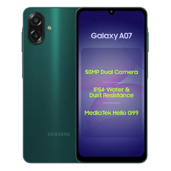 With a 6.7-inch HD+ display, 90Hz refresh rate, 50MP dual camera, and a 5000mAh battery, the Galaxy A07 LTE is designed to handle daily usage with ease—whether it’s streaming, browsing, calling, or capturing memories.