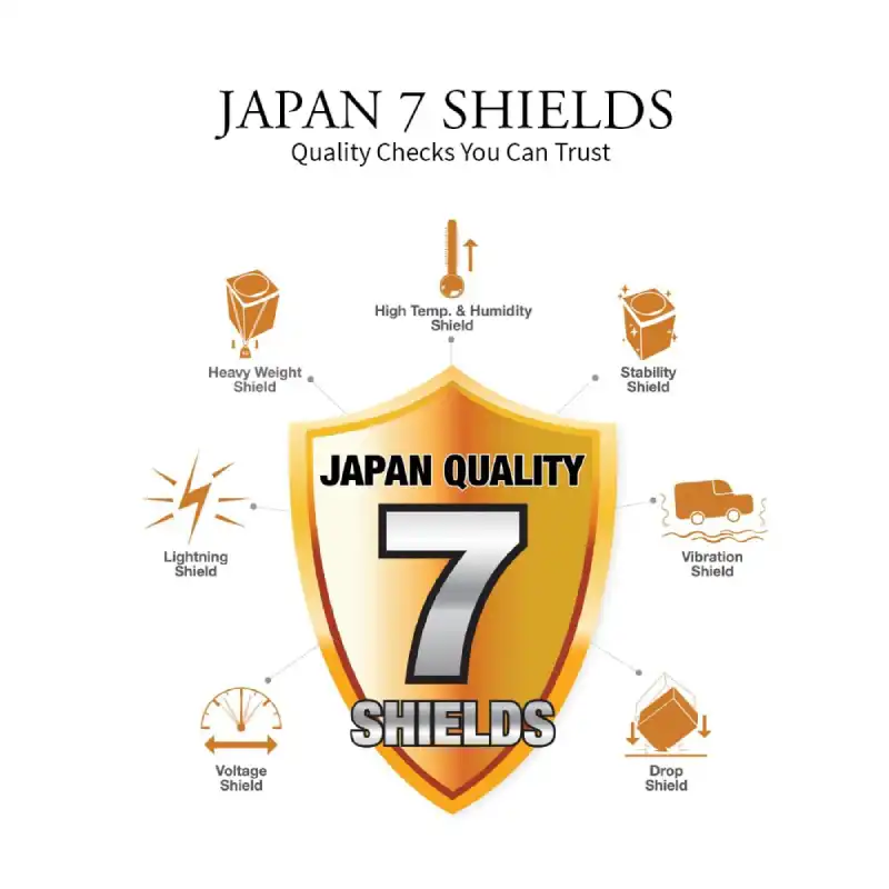 Built with Japan 7 Shields protection, the Sharp ES-T75N-BK ensures extra durability against voltage fluctuations, rust, overloads, and moisture. This advanced technology extends the machine’s lifespan, making it a reliable choice for long-term use.